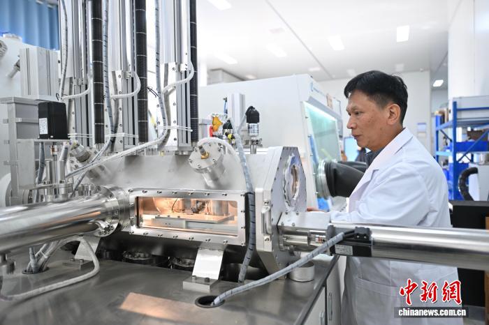 图为正在深空物资身分光谱探测团结实行室,科研职员正正在停止沉氧火的共位素占比丈量。中新社记者 韩苏本 摄