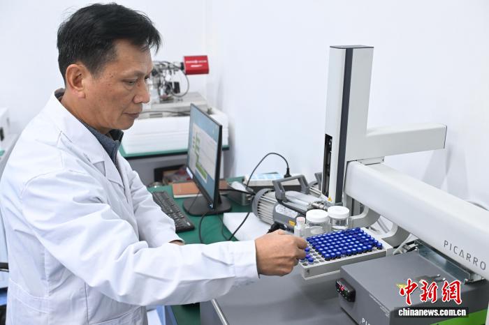 图为科研职员正在实行室停止沉氧火的共位素占比丈量。中新社记者 韩苏本 摄